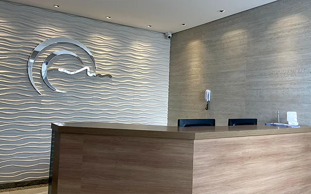 A recepção da nossa clínica é um espaço especialmente projetado para oferecer aos nossos pacientes um ambiente calmo e receptivo. Ao adentrar, você será imediatamente envolvido por uma atmosfera tranquila, onde o conforto e a hospitalidade são prioridade.